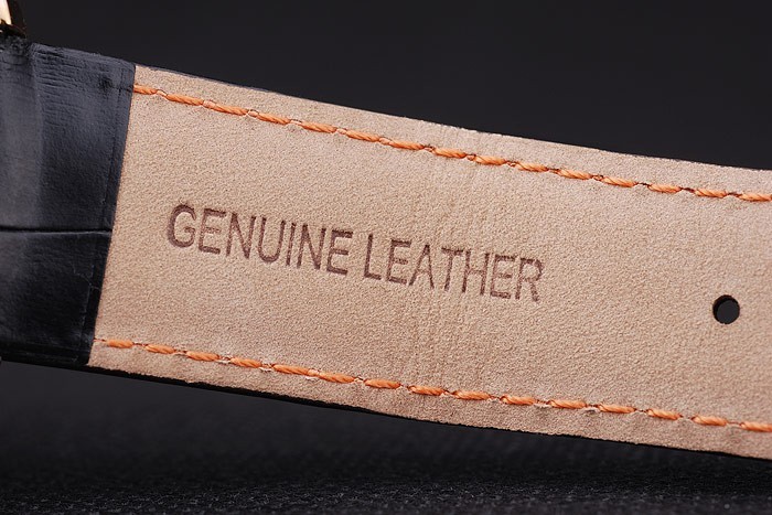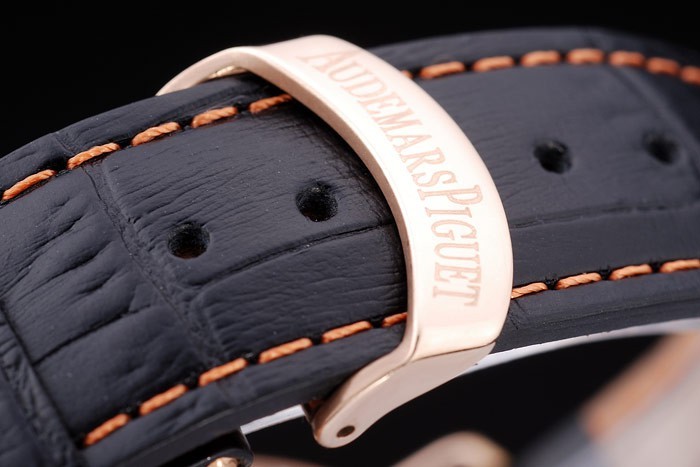 Rannekoru: Musta krokotiili nahkaranneke oranssi ompelemalla & lämmön kohokuvioitu Audemars Piguet nimi & logo sekä Audemars Piguet piirretyn 18k Ruusu-kullattu flip-over koukku Lukko