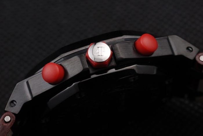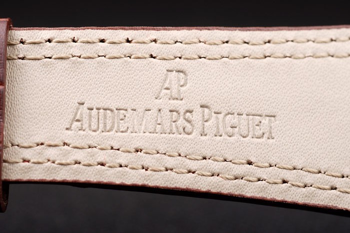 Rannekoru: Lämpö kohokuvioitu Audemars Piguet ruskea krokotiili nahkahihna kaksinkertaisella punaiset tikkaukset & Audemars Piguet kaiverrettu ioni päällystetty taitettavan Lukko