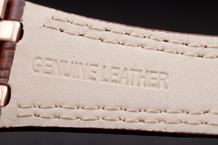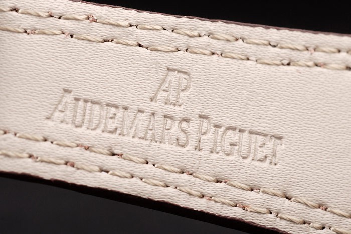 Rannekoru: Lämpö kohokuvioitu Audemars Piguet ruskea krokotiili nahkahihna kaksinkertaisella valkoiset tikkaukset & Audemars Piguet kaiverrettu nousi-kullattu fold-in Lukko