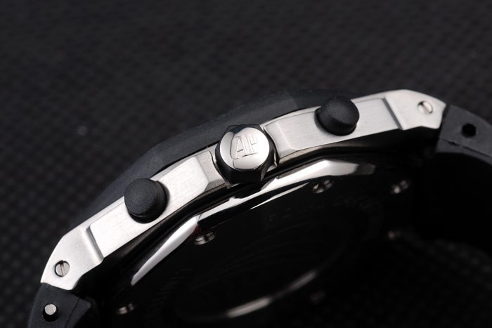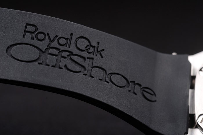 Rannekoru: Audemars Piguet Royal Oak Offshore kohokuvioitu musta kumisilmukka Audemars Piguet kaiverrettu kiillotetusta ruostumattomasta teräksestä kertaiseksi -in Lukko