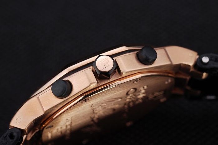 Kruunu: Ruusu-kullattu Audemars Piguet logo kaiverrettu ioni-päällystetty cutwork Kruunu, jossa on kaksi pientä ioni-päällystetty Kruunut molemmin puolin it