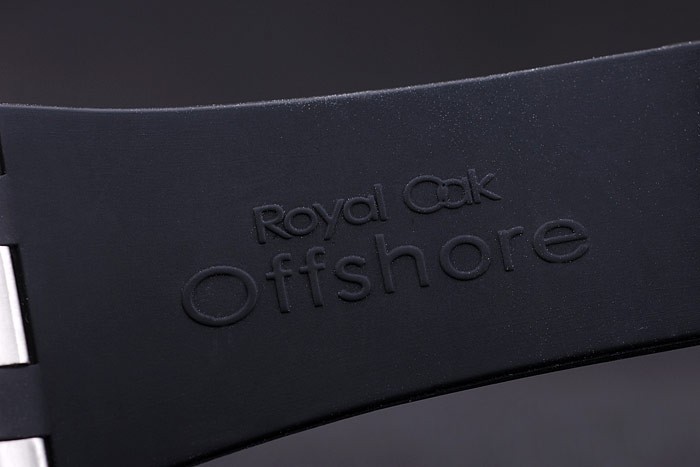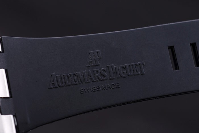 Rannekoru: Musta kumisilmukka lämpöä kohokuvioitu Audemars Piguet Royal Oak Offshore leima & Audemars Piguet kaiverrettu ioni päällystetty hook-solki Lukko