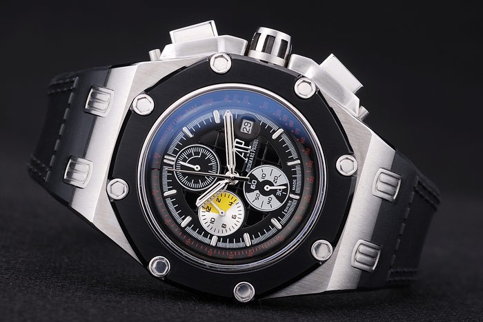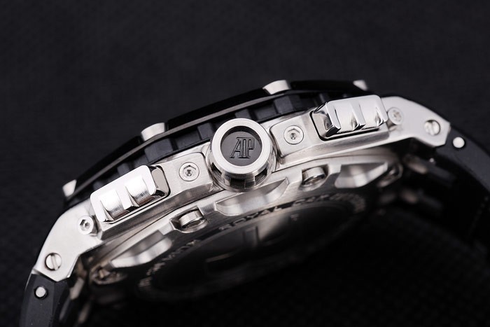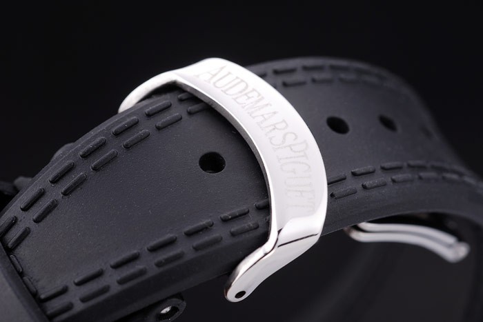 Rannekoru: Lämpö kohokuvioitu Audemars Piguet sveitsiläistä logo & mustaa kumia hihna Audemars Piguet kaiverrettu ruostumatonta teräs koukku-solki Lukko