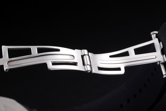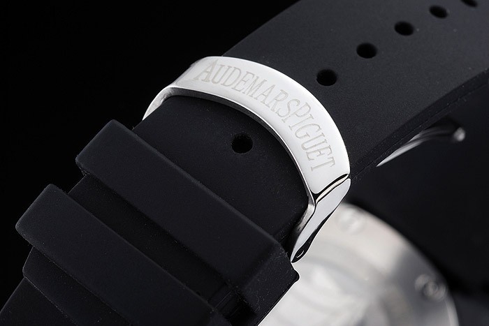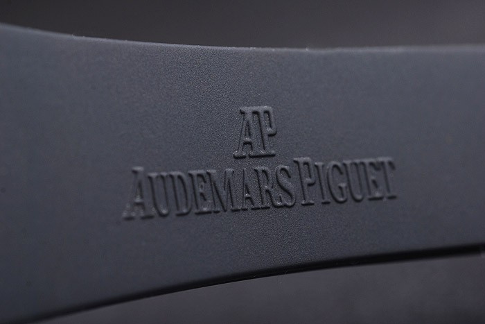 Rannekoru: Audemars Piguet kohokuvioitu musta kumisilmukka Audemars Piguet kaiverrettu ruostumatonta terästä taitettavan Lukko