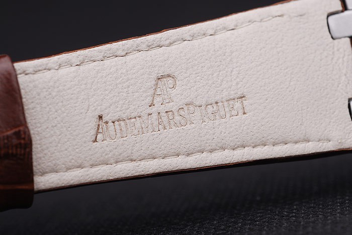Rannekoru: Brown krokotiili nahkaranneke valkoinen juova tikkaukset & lämmön kohokuvioitu Audemars Piguet nimi & logo & Audemars Piguet kaiverrettu ruostumatonta terästä flip-over koukku Lukko