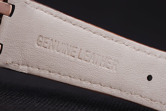 Rannekoru: Brown krokotiili nahkaranneke valkoinen juova tikkaukset & lämpö kohokuvioitu Audemars Piguet nimi & logo sekä Audemars Piguet kaiverrettu ruusu-kullattu flip-over koukku Lukko