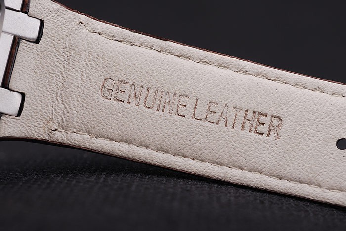 Rannekoru: Brown krokotiili nahkaranneke valkoinen juova tikkaukset & lämmön kohokuvioitu Audemars Piguet nimi & logo & Audemars Piguet kaiverrettu ruostumatonta terästä flip-over koukku Lukko