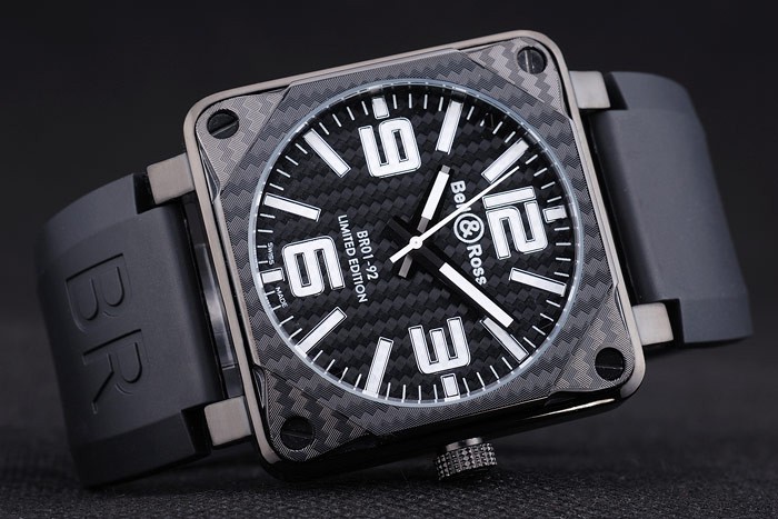 Rannekoru: Bell & Ross logo & tuotekoodi kohokuvioitu musta kumisilmukka ioni- kullattu koukku-solki Lukko
