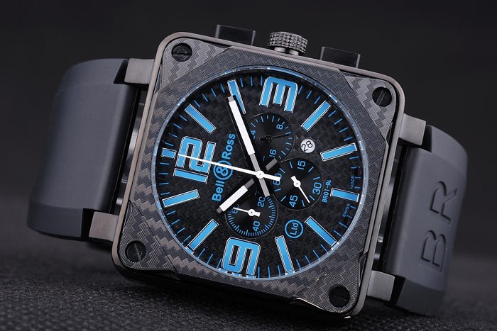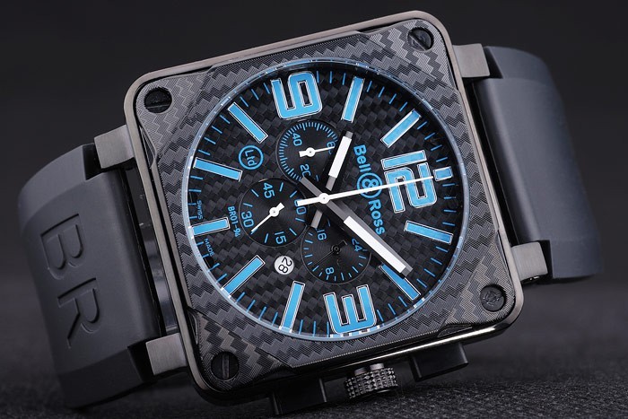 Rannekoru: Heat kohokuvioitu Bell & Ross logo & tuotekoodi musta kumisilmukka ionin -plated hook-solki Lukko
