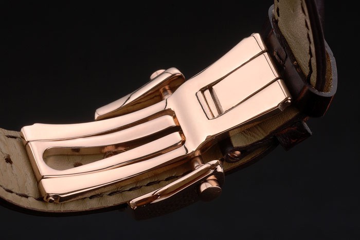 Rannekoru: Breguet lämpö kohokuvioitu musta krokotiili nahkahihna Brequet kaiverrus 18k Ruusu-kullattu fold-in hook-solki Lukko