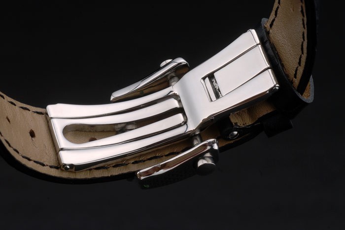 Rannekoru: Breguet lämpö kohokuvioitu musta krokotiili nahka hihna kaiverrettu Brequet kiillotettu ruostumaton teräs taitettava in hook-solki Lukko
