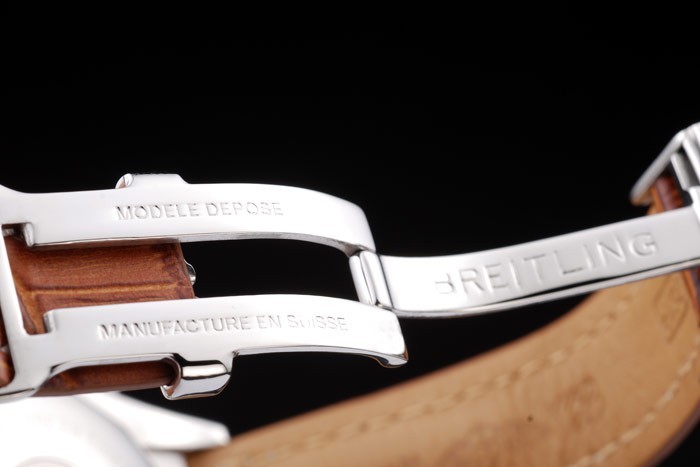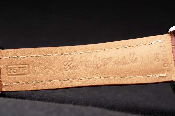 Rannekoru: Brown krokotiili nahkaranneke patentti valkoiset tikkaukset & lämmön kohokuvioitu Breitling kaiverrukset & kaiverrettu ruostumatonta terästä kertaiseksi lukko Breitling logo top