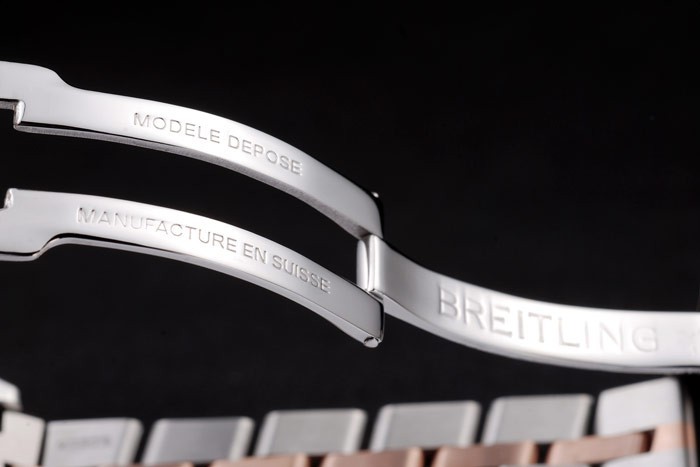 Kruunu: 18k Ruusu-kullattu ruostumaton teräs cutwork Kruunu Breitling logo & kaksi pienempää Kruunut kummallakin puolella se