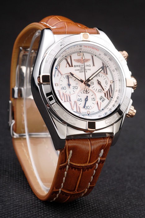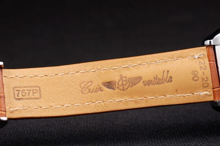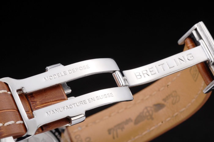 Rannekoru: Brown krokotiili nahkaranneke patentti valkoiset tikkaukset & lämmön kohokuvioitu Breitling kaiverrukset & kaiverrettu ruostumatonta terästä kertaiseksi lukko Breitling logo top