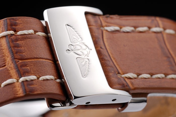 Rannekoru: Brown krokotiili nahkaranneke patentti valkoiset tikkaukset & lämmön kohokuvioitu Breitling kaiverrukset & kaiverrettu ruostumatonta terästä kertaiseksi lukko Breitling logo top