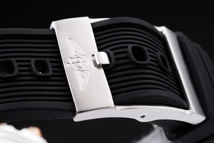 Rannekoru: uurrettu musta kumisilmukka kaiverrettu ruostumatonta terästä koukku-solki lukko Breitling logo top
