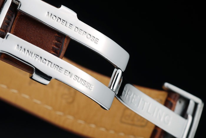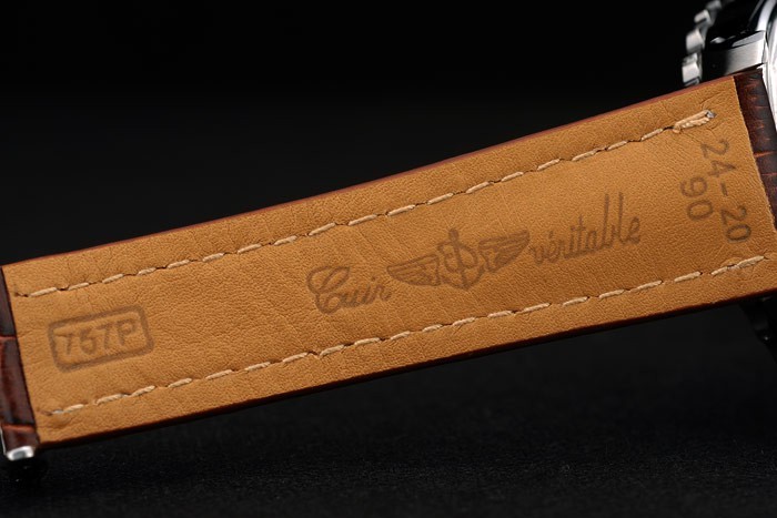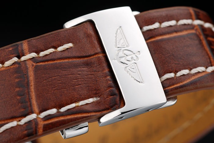 Rannekoru: Lämpö kohokuvioitu Breitling nimi & logo ruskea krokotiili nahkaranneke valkoinen juova tikkaukset & logo kaiverrettu ruostumatonta terästä fold-in Lukko