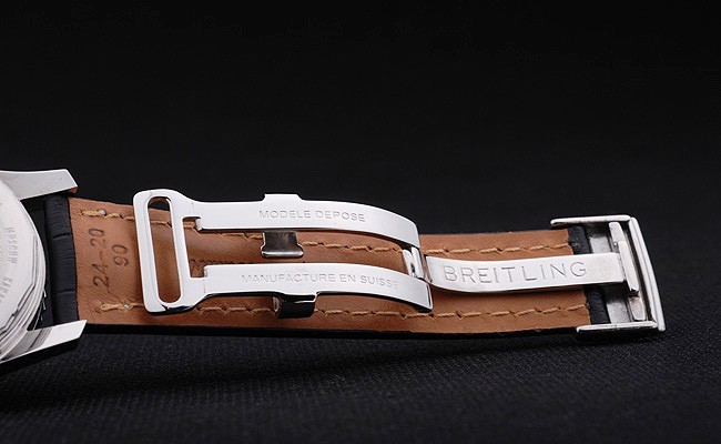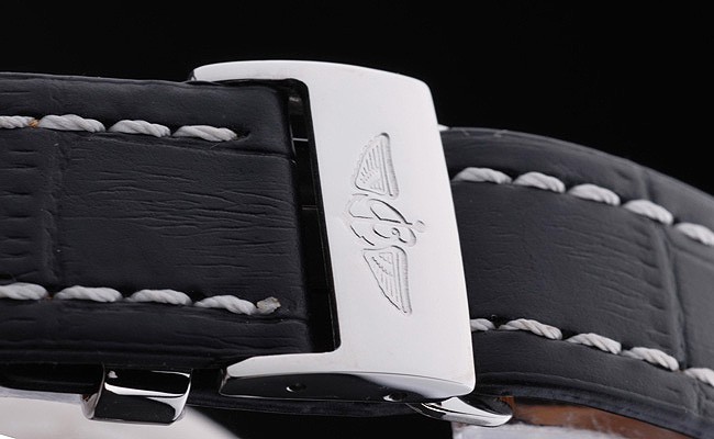 Rannekoru: Musta krokotiili nahkaranneke patentti valkoinen tikkaukset & lämmön kohokuvioitu Breitling kaiverrukset & kaiverrettu ruostumatonta terästä kertaiseksi lukko Breitling logo top