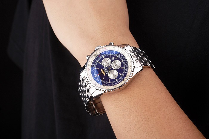 Kello on AR lasia. Kasvot väri näkyy eri värejä mukaan, miten valo osuu itTakaisin: Ruostumaton teräs push-in tapauksessa takaisin Breitling engravings