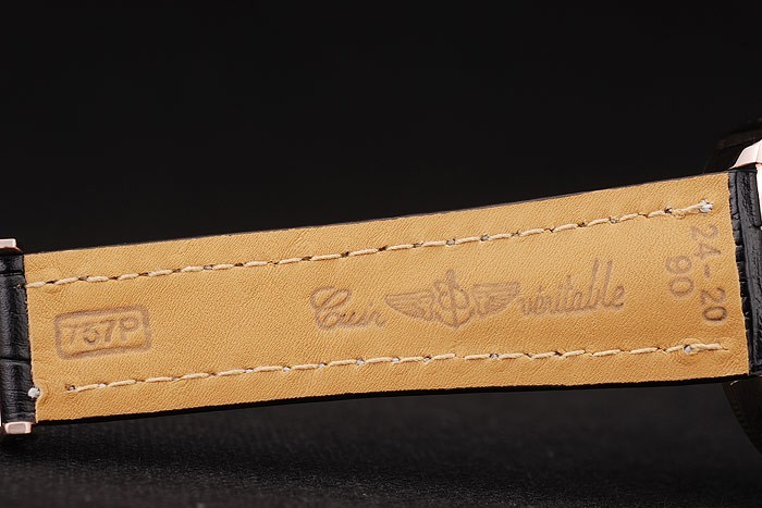 Rannekoru: Lämpö kohokuvioitu Breitling musta krokotiili nahkaranneke valkoinen juova tikkaukset & Breitling logo kaiverrettu taittuva in Ruusu-kullattu Lukko