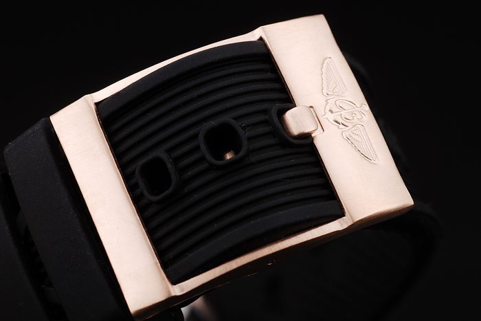 Rannekoru: Musta kumisilmukka Breitling logo kaiverrettu nousi-kullattu koukku-solki Lukko