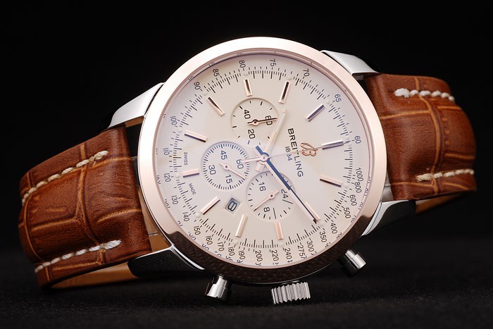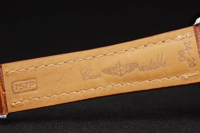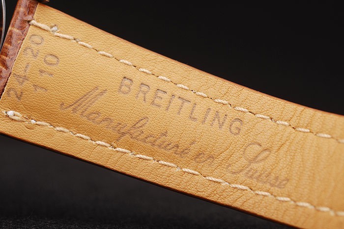 Rannekoru: Lämpö kohokuvioitu Breitling ruskea krokotiili nahkaranneke valkoinen juova tikkaukset & Breitling logo kaiverrettu taittuva ruostumattomasta Lukko