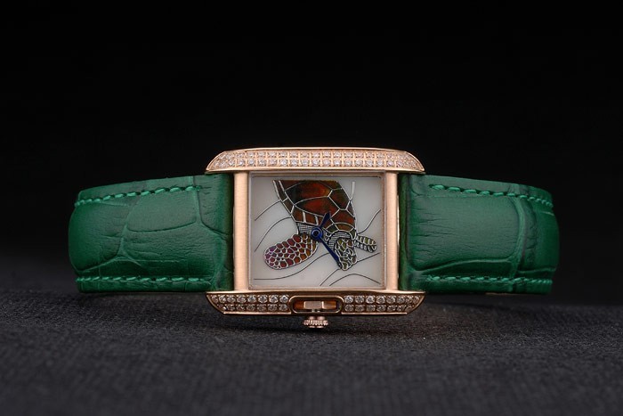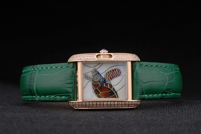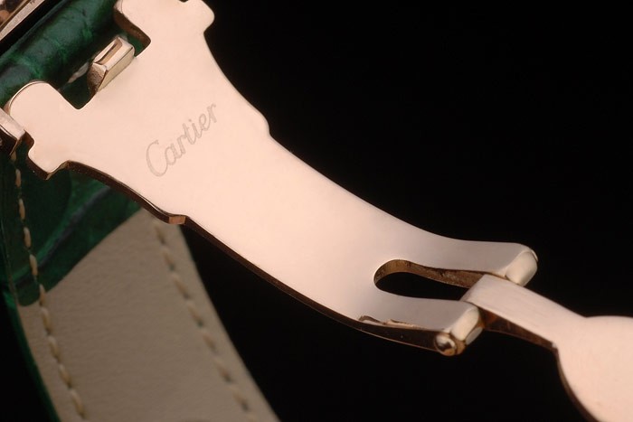 Rannekoru: Cartier lämpö kohokuvioitu vihreä krokotiili nahkaranneke 18k Ruusu-kullattu fold-in lukko solki