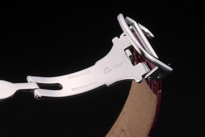 Rannekoru: Cartier lämpö kohokuvioitu violetti krokotiili nahkaranneke kiillotetusta ruostumattomasta teräksestä taitettavan lukko solki