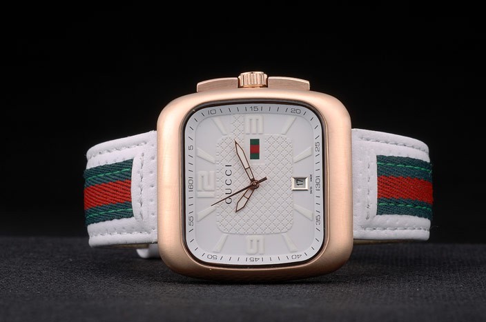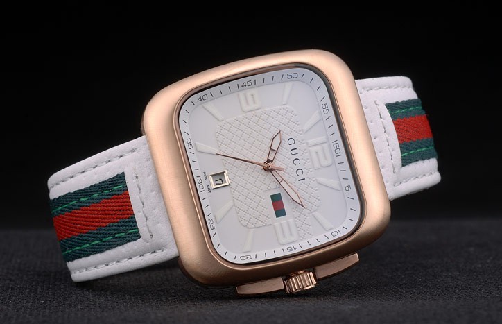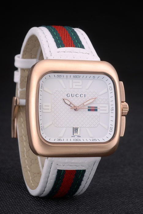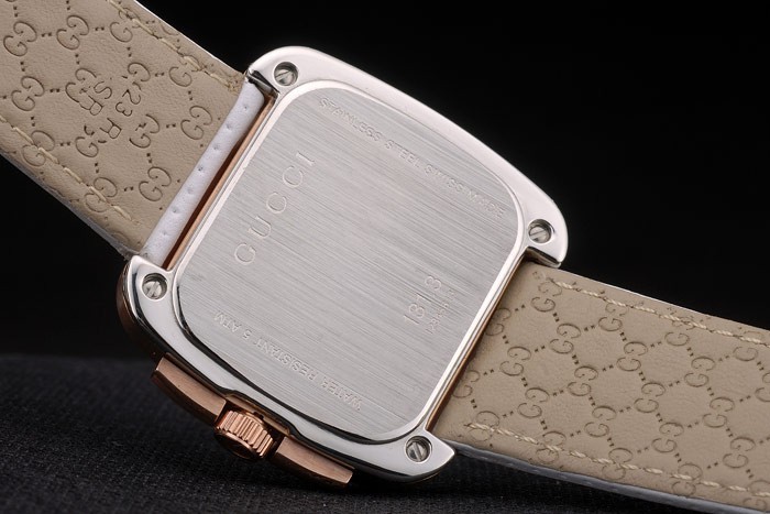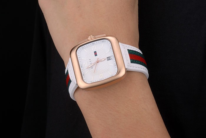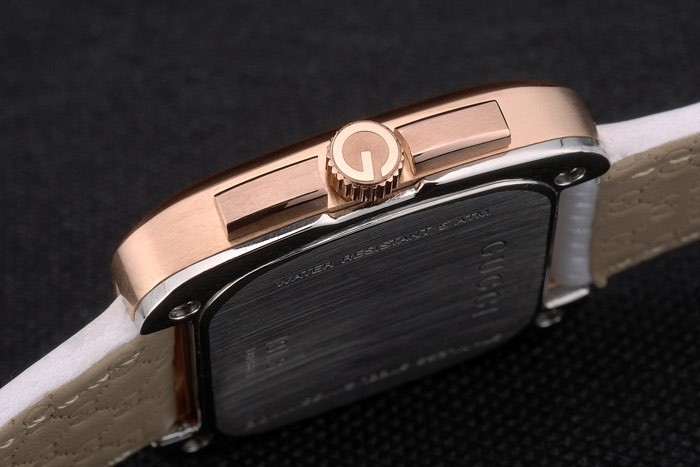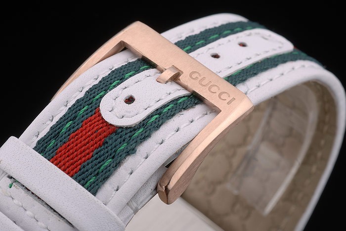 Gucci Valkoinen nahkahihna Ruusu Kulta Kehys Valkoinen Soittaa 80223