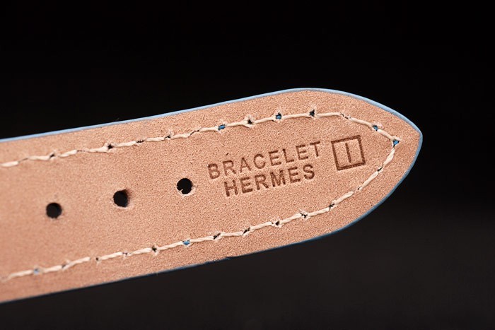 Rannekoru: Vaaleansininen nahkahihna lämmöllä painettu leima rannerengas Hermes & Hermes kaiverrettu kiillotettua ruostumatonta terästä koukku-solki