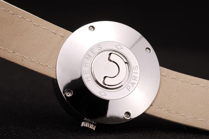 Rannekoru: Valkoinen nahka hihna lämpö painettu leima rannerengas Hermes & Hermes kaiverrettu kiillotettua ruostumatonta terästä koukku-solki lukko