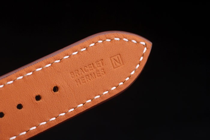 Rannekoru: Hermes lämpö kohokuvioitu tan nahkaranneke valkoinen juova tikkaukset & Hermes kaiverrettu kiillotettua ruostumatonta terästä koukku-solki Lukko