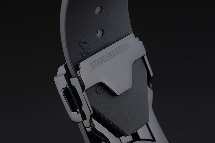 Rannekoru: Hublot Geneve lämpö kohokuvioitu uurrettu musta kumisilmukka Hublot Geneve kaiverrettu ioni-päällystetty push release koukku Lukko