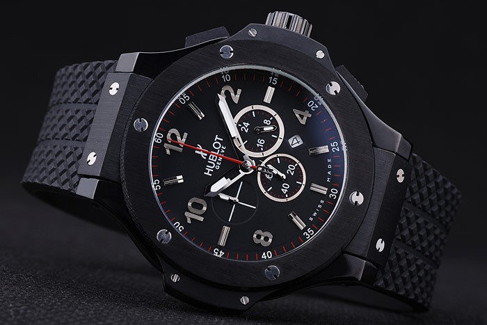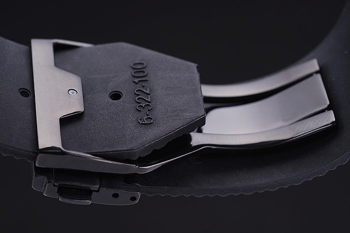 Rannekoru: kuvioitu musta kuminauha kanssa ioni-päällystetty painike koukku lukko & Hublot engravings