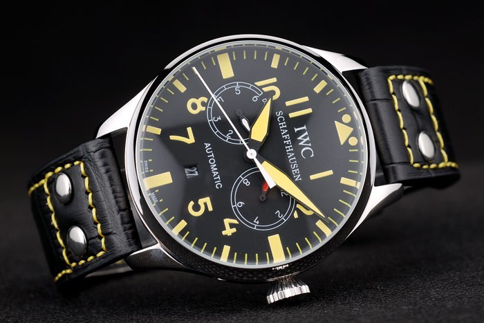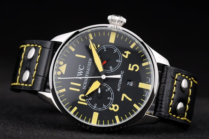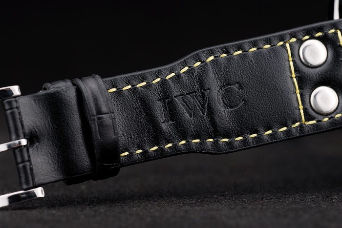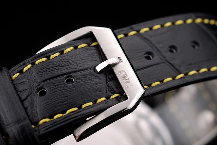 Rannekoru: IWC lämpö kohokuvioitu musta krokotiili nahka hihna keltainen lanka ompeleet & kaiverrettu harjattua ruostumatonta terästä koukku-IWC Lukko