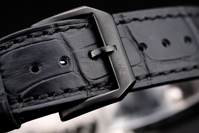 Rannekoru: IWC lämpö kohokuvioitu musta krokotiili nahka hihna IWC kaiverrettu ioni-pinnoitettu ruostumaton teräs hook- Lukko