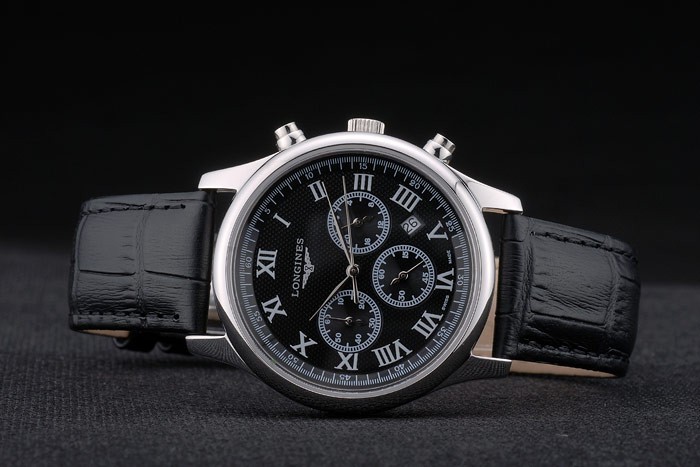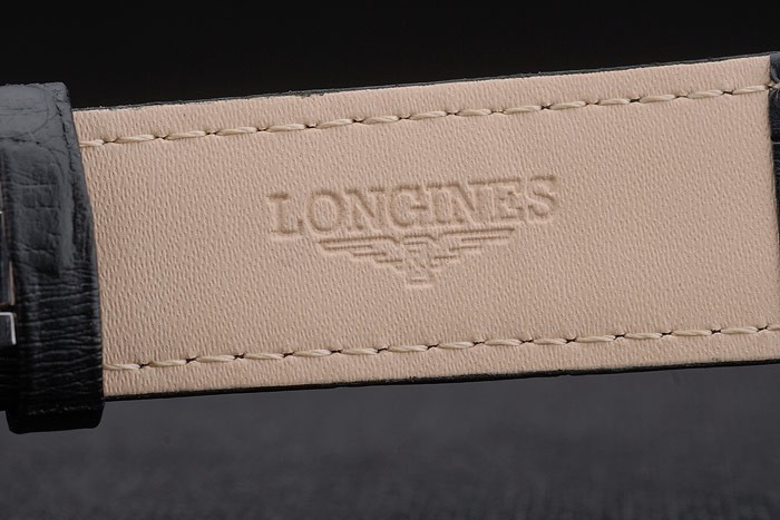 Rannekoru: Longines lämpö kohokuvioitu musta krokotiili nahka hihna Longines logo kaiverrettu & kiillotettua ruostumatonta terästä koukku Lukko