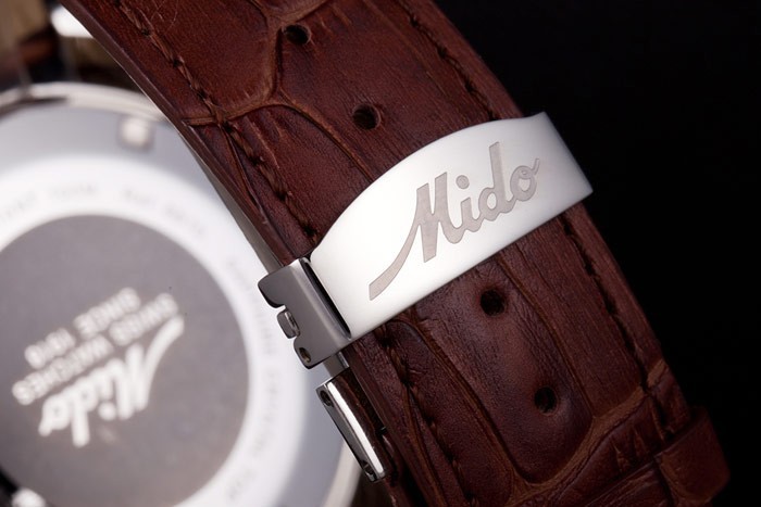 Mido Multifort Ruskea Croco nahka hihnan Valkoinen Valitsin 80286