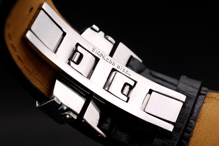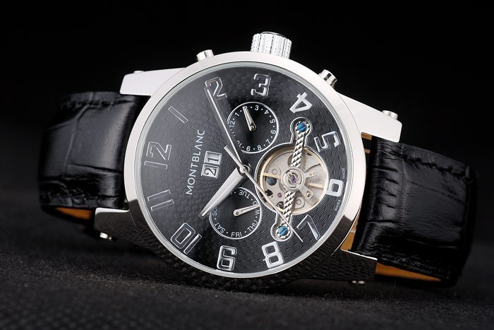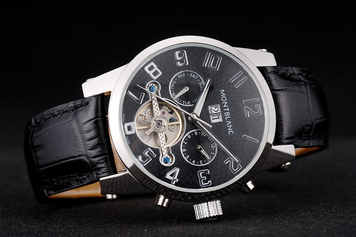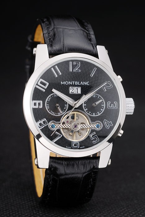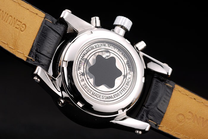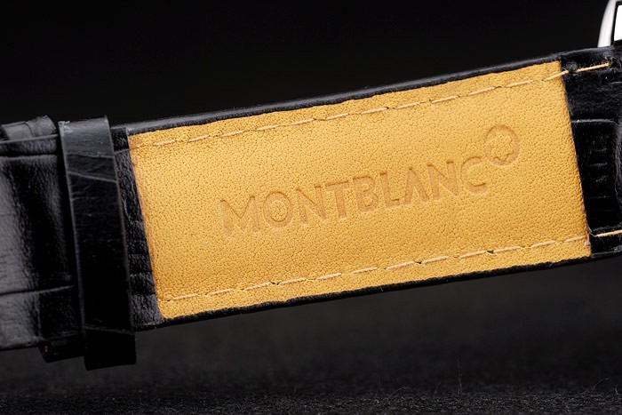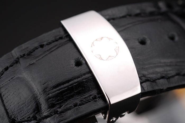 Rannekoru: MontBlanc lämpö kohokuvioitu musta krokotiili nahka hihna MontBlanc logo kaiverrettu kiillotetusta ruostumattomasta teräksestä piilotettu koukku Lukko