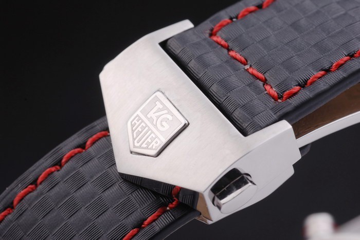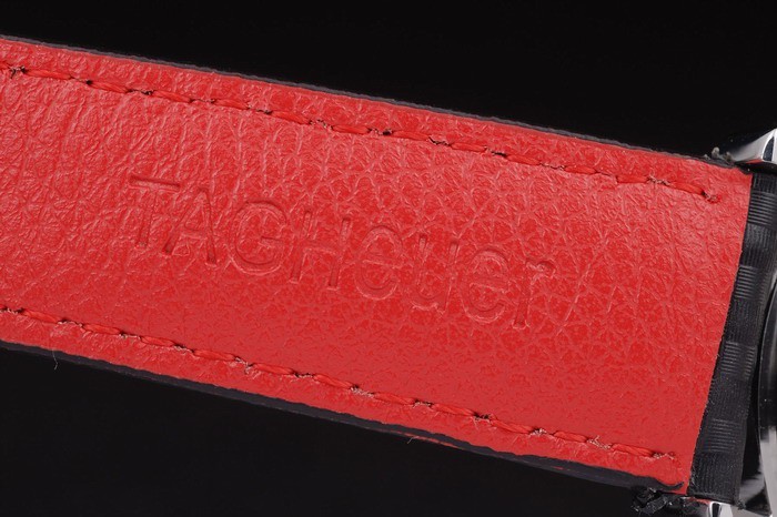 Rannekoru: Musta nahkaranneke punaisia ​​saumat & Tag Heuer merkintä & harjattu teräs käyttöönotto Lukko