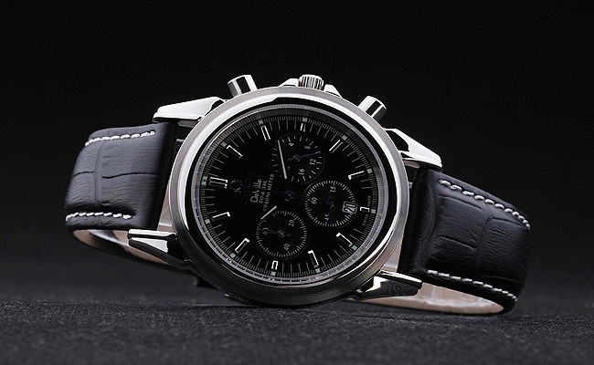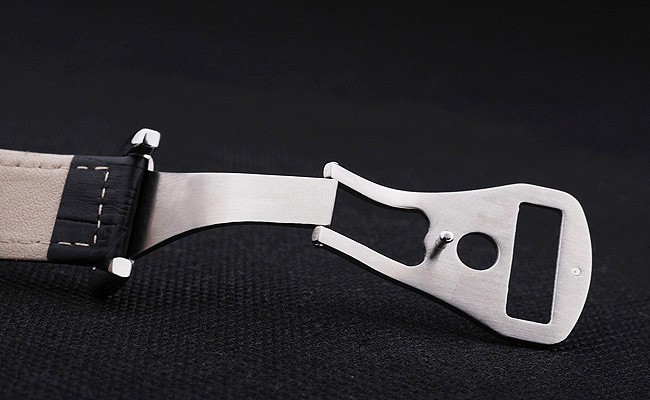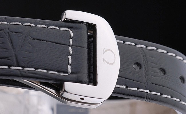 Rannekoru: Musta krokotiili nahkahihna valkoiset tikkaukset & Omega logo kaiverrettu ruostumatonta terästä koukku-solki Lukko