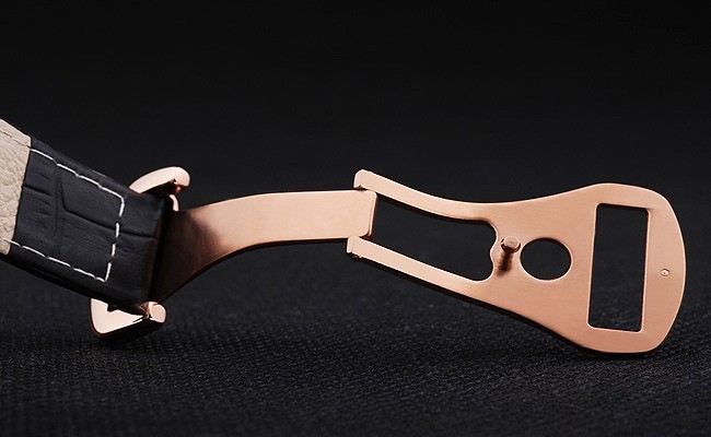 Rannekoru: Musta krokotiili nahkahihna valkoiset tikkaukset & Omega logo kaiverrettu kulta koukku-solki Lukko