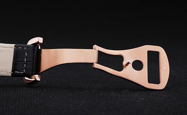 Rannekoru: Musta krokotiili nahkahihna valkoiset tikkaukset & Omega logo kaiverrettu kulta koukku-solki Lukko