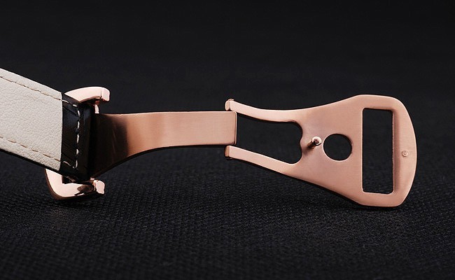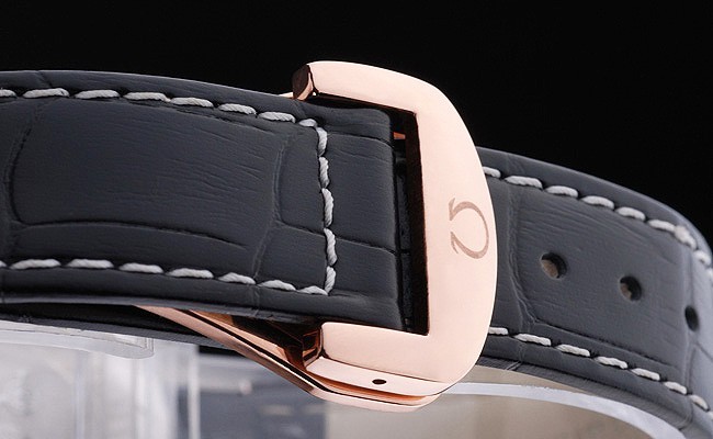 Rannekoru: Musta krokotiili nahkahihna valkoiset tikkaukset & Omega logo kaiverrettu kulta koukku-solki Lukko