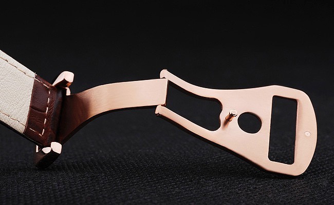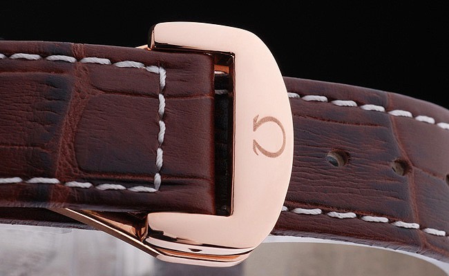 Rannekoru: Brown krokotiili nahkahihna valkoiset tikkaukset & Omega logo kaiverrettu kulta koukku-solki Lukko