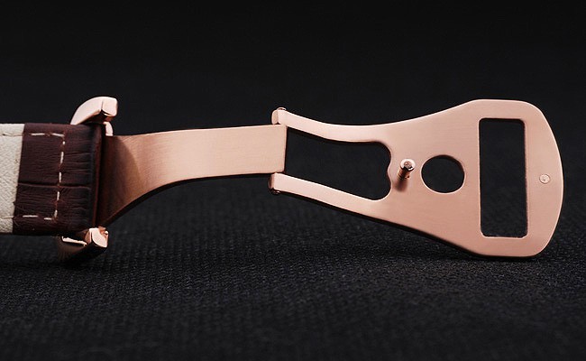 Rannekoru: Brown krokotiili nahkahihna valkoiset tikkaukset & Omega logo kaiverrettu kulta koukku-solki Lukko