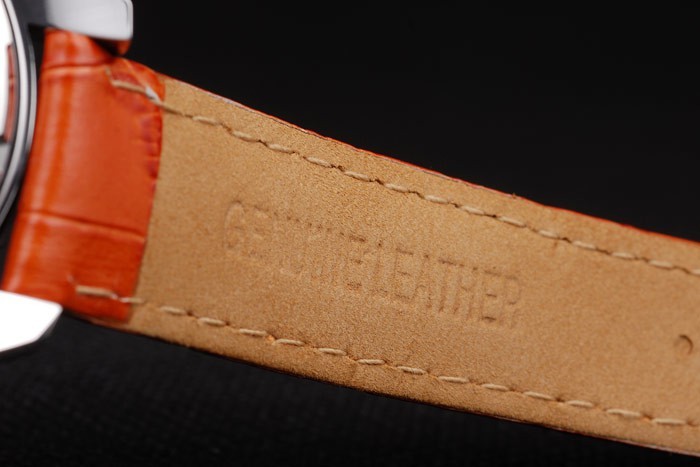 Rannekoru: Orange krokotiili nahkaranneke lämpöä kohokuvioitu Omega leima & harjattua ruostumatonta terästä koukku-solki lukko Omega logo top