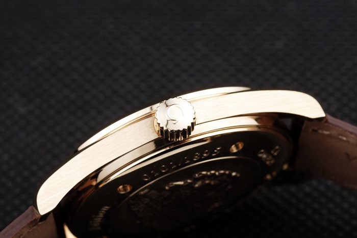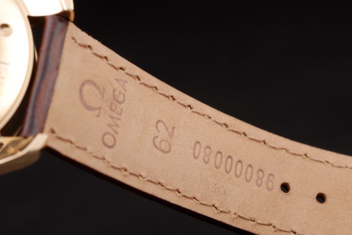 Rannekoru: Brown krokotiili nahkaranneke lämpöä kohokuvioitu Omega leima & Omega kaiverrettu 18k keltainen kulta fold-in Lukko