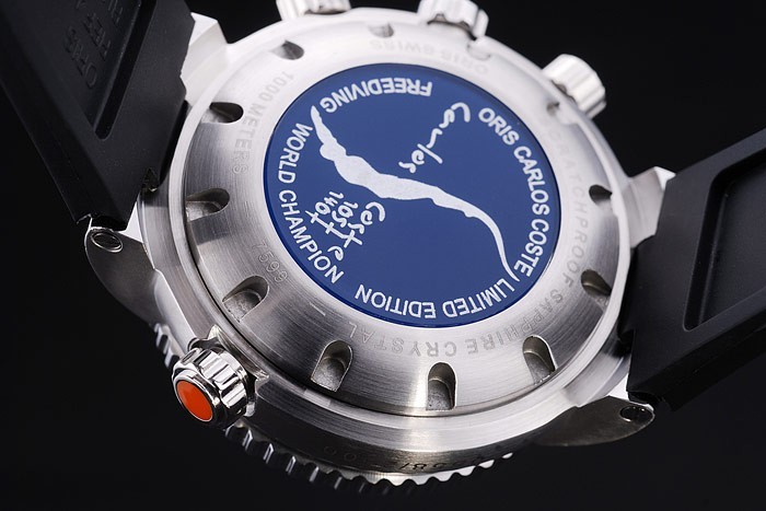 Takaisin: Ruostumaton teräs snap-in takaisin sininen asteikko Oris Carlos Coste rajoitettu erä kirjoitus & logo