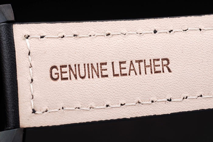 Rannekoru: Musta nahkaranneke lämpöä kohokuvioitu Luminor Panerai leima & ioni päällystetty ruostumaton teräs koukku-solki lukko kanssa Panerai engraving